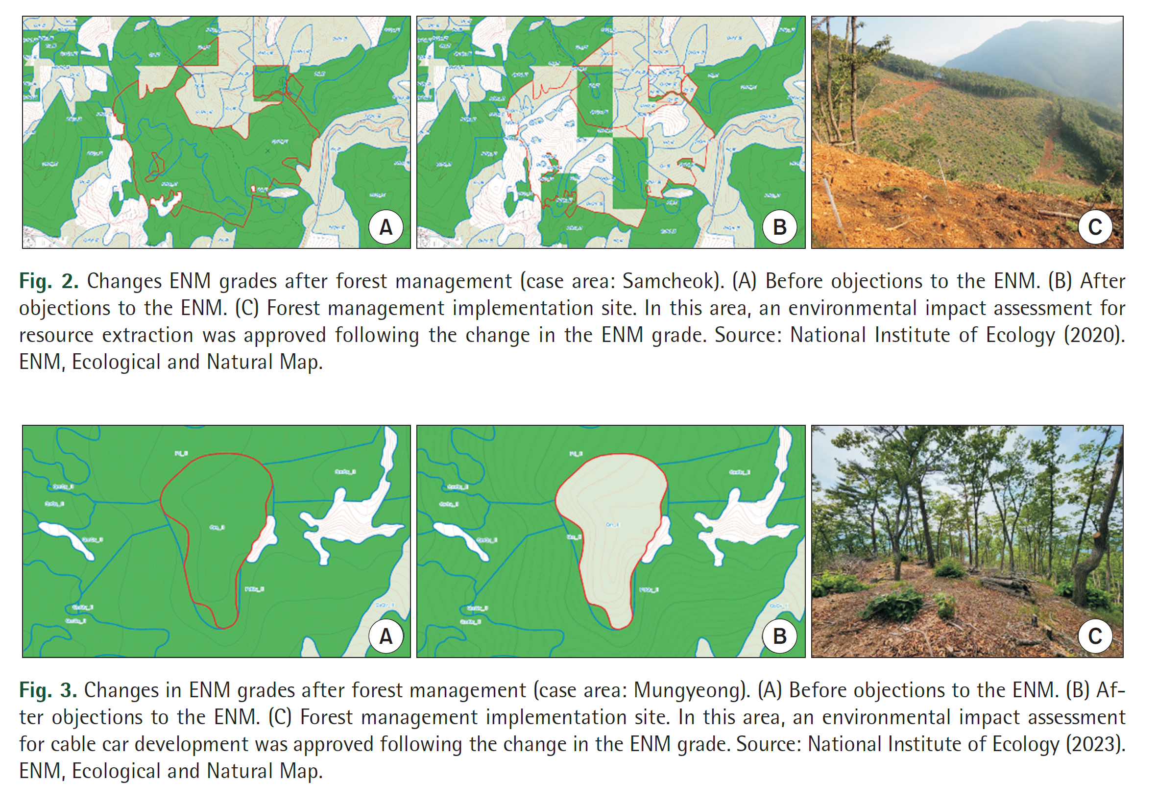 국립생태원에 따르면 실제로 삼척의 한 지역에서는 산림관리 후 등급이 하향 조정됐고, 이후 자원 채굴을 위한 환경영향평가가 승인됐다. 문경의 사례에서는 케이블카 개발사업이 같은 과정을 거쳐 추진됐다.