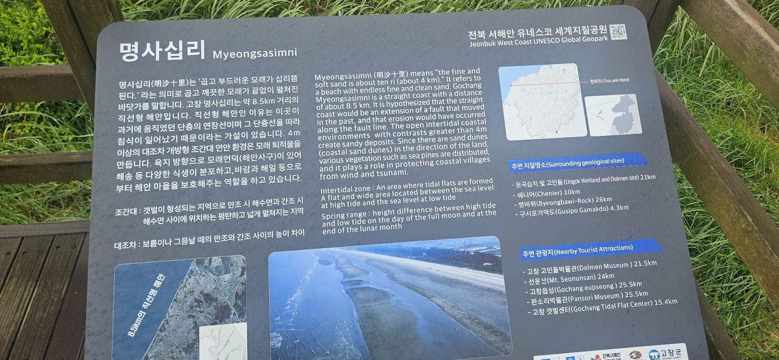 명사십리 해변은 전북 서해안권 국가지질공원에 포함된 지질명소다. 고창군은 국가지질공원 홈페이지에서 명사십리 해안을 “서해안에서 보기드문 약 8.5km 거리의 직선형 해안”이라고 소개하고 있다.