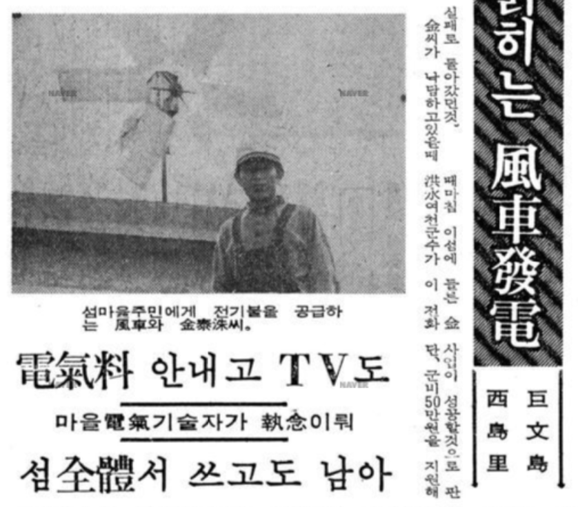 1974년 8월 10일 대한뉴스는 전남 거문도의 작은 마을에서 일어난 특별한 이야기를 전했다. 남해 외딴 섬에 풍차 발전소가 생겼다는 소식이었다. 석유파동으로 에너지 위기를 겪던 시절, 한 섬마을 주민이 직접 바람으로 전기를 만들어낸 것이다.