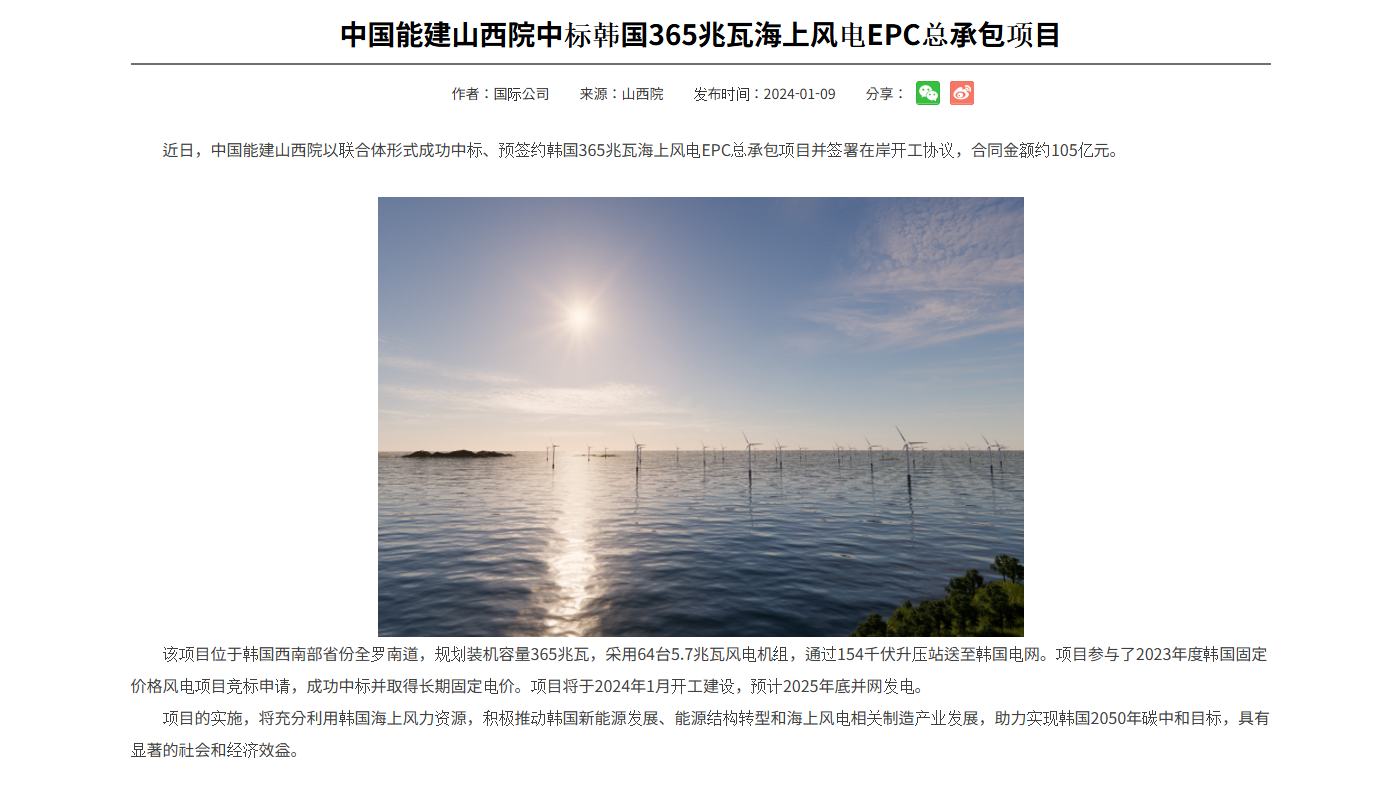 CEEC 산서전력설계원(이하 산서원)은 2024년 1월 10일, "한국 낙월해상풍력의 EPC 총괄 계약을 수주했다"고 발표했다. EPC는 엔지니어링(E), 조달(P), 시공(C)까지 특정 기업이 전담하는 방식이다.