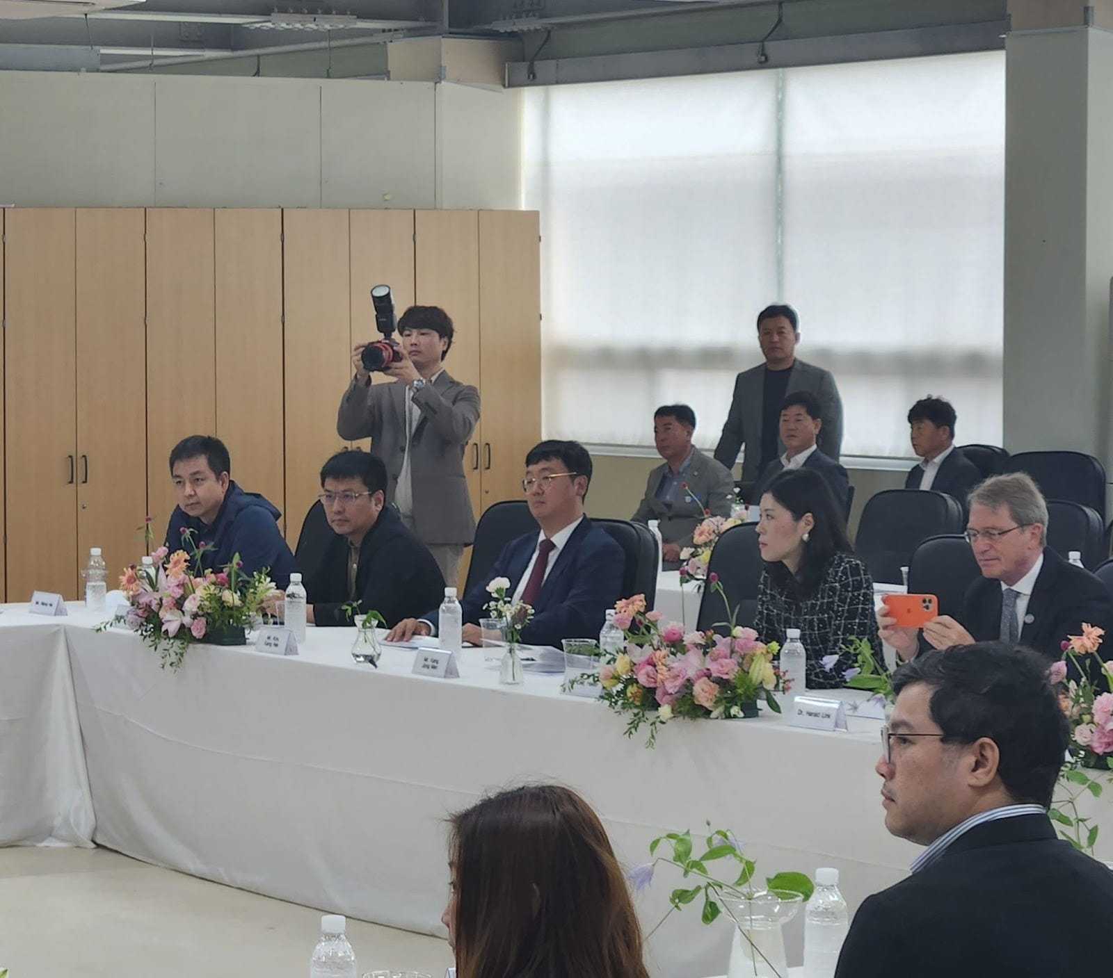 아래 사진 속 회의에는 명운산업개발 김강학 회장과 비그림파워코리아 대표 해럴드 링크가 자리에 앉아 있다. 이때는 명운산업개발이 PF에 실패하면서 기존에 참여하기로 했던 국내 업체들과 해외 선박 대여 업체 등 계약이 무산된 시점 직후다.